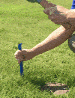 Berntsen’s plastic stakes feature an uneven, jagged head to prevent hammer slippage and a half-moon shape that enhances stake strength. Even if stepped on, they’ll spring back to their original position.