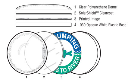 the material which is then covered with the SolarShield clear coat for added U.V. resistance. Finally a polyurethane "dome" is applied to the face of the marker. This optically clear, self-healing, non-yellowing, Duracast surface protects against mechanical and chemical abrasion. The Duracast surface effectively doubles U.V. resistance as well.