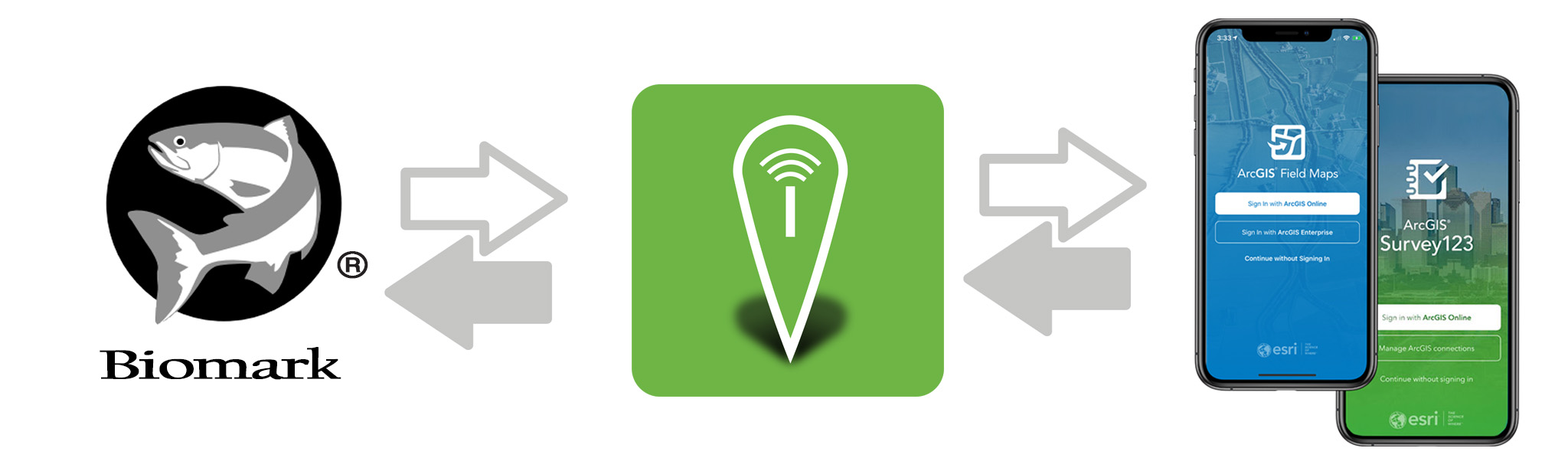 Simplify your tagging process with the InfraMarker app. It directly connects Biomark readers and PIT tags to Survey123 and Field Maps, automatically launching the correct workflow and sending scanned PIT tag data directly into the Esri apps.