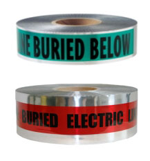 Detectable Underground Warning Tape is used for accurately locating and preventing damage to valuable underground utility installations. It has an aluminum backing to make underground assets easy to find using a non-ferrous locator. Properly installed, this tape helps catastrophically inaccurate digging when locating utilities such as electrical lines, gas pipes and communication cables.